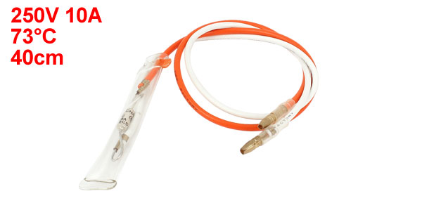 Product Name Thermal Fuse Fit for Refrigerator Rating 250V 10A Cutoff Temperature 73°C Fuse Size 4 x 13 mm / 0.16" x 0.51" (D*L) Total Length 40cm / 15.7" Main Material Aluminum Fuse, Metal Leads, Plastic Main Color Orange, White Weight 12g Package 1 x Thermal Fuse(Non-OEM) - Reviews
