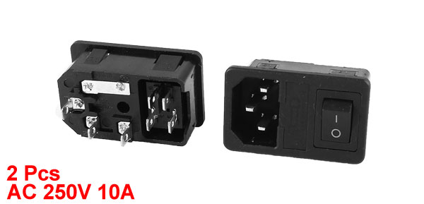 Details250V 10A IEC 320 C14 AC Power Inlet Panel Socket w Fuse w Rocker Switch 2 Pcs  Product Name Power Inlet Socket Power Supply AC 250V 10A Plug Type IEC 320 C14 Rocker Switch Type 2Pin, 2 Position; DPST Button Color Black Mounting Type Clamp Type Mount Size 4.7 x 2.8cm/1.85" x 1.1"(L*W) Overall Size 5 x 3.1 x 3cm / 2" x 1.2" x 1.2" (L*W*T) Fuse Size 5 x 20mm / 0.2" x 0.8" (D*L) Material Plastic, Metal Color Black, Silver Tone Net Weight 45g Package Content 2 x Power Inlet Socket w Rocker Switch w Fuse