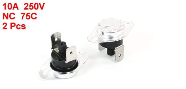 Product Name Manual Reset Thermostat Model.No KSD301 Action Type (NC)Normal Closed Action Temperature 75 Degree Celsius Rating 10A 250V Size(Each) 3.2 x 2.2cm/ 1.26" x 0.87"(L*T) Material Metal, Plastic Color Black, Silver Tone Net Weight 10g Package Content 2 x Manual Reset Thermostat - Reviews