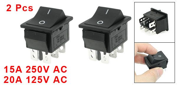 Product Name Rocker Switch Poles DPDT Terminals 6(On - Off) Rating Voltage 15A 250V AC, 20A 125V AC Total Size(Each One) 3.5 x 3.5 x 2.5cm / 1.4" x 1.4" x 1"(L * W * T) Mount Hole Size 2.8 x 2.2cm / 1.1" x 0.9"(L*W) Color Black, Silver Tone Material Plastic & Metal Total Weight 25g Package Content 2 x Rocker Switch - Reviews
