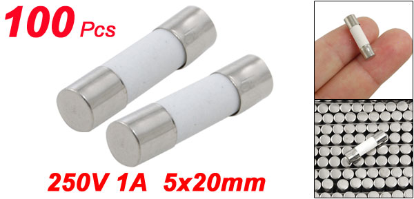 Product Name Ceramic Fuse Fuse Type Fast Acting Features Low Breaking Capacity Rated Voltage 250V Rated Current 1A Specification 5 x 20mm Diameter 5mm / 0.196" Length 20mm / 0.787" Quantity 100(±2%) Material Ceramic Main Color White, Silver Tone Net Weight 83g Package Content 100 x Ceramic Fuses - Reviews