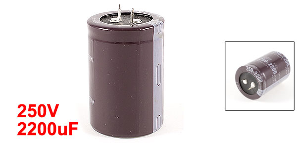 Product Name Electrolytic Capacitor Type Radial Lead Features Standard General Purpose Maximum Temperature 105°C Withstand Voltage 250V Capacitance 2200uF Body Size 35 x 52mm / 1.4" x 2" (D*L) Terminal Spacing 9mm / 0.35'' Dielectric Material Aluminum Color Brown Weight 78g Package Content 1 x Electrolytic Capacitors - Reviews
