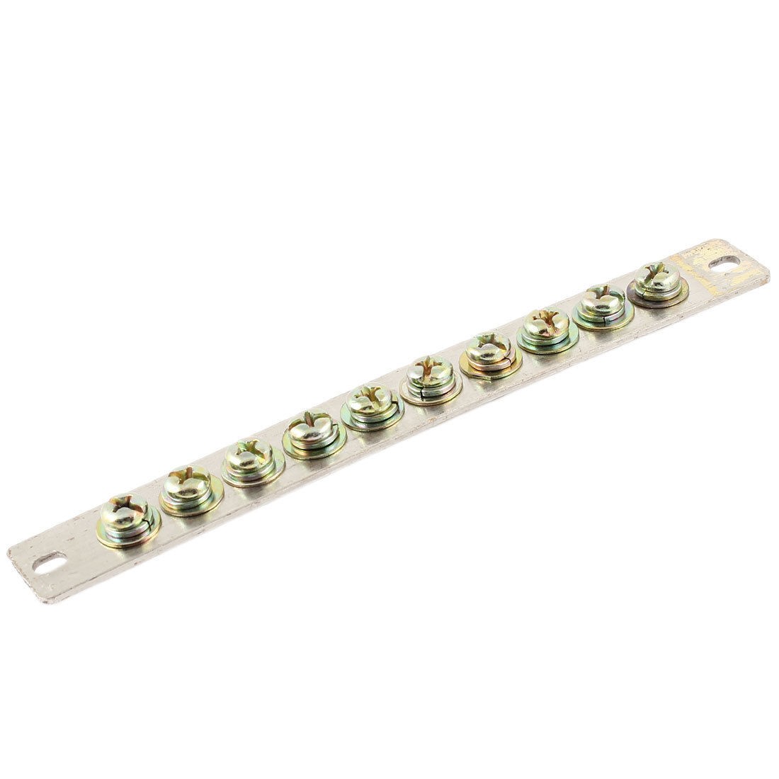 Product Name Copper Terminal Block Voltage and Current 250V 25A Material Brass Color Bronze Tone, Silver Tone Type 10 Positions Install Hole Size 8.3x 6.2mm/ 0.32" x 0.24"(L*W) Size 205 x 25mm/ 8" x1" (L*W) Total Weight 162g Package Content 1 x Copper Terminal Block - Reviews
