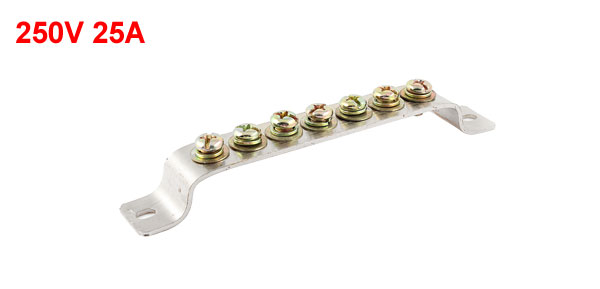 Product Name Copper Terminal Block Screw Size M5 x 10mm Voltage and Current 250V 25A Material Brass Color Bronze Tone, Silver Tone Type 7 Positions Install Hole Size 8.4 x 6.2mm/ 0.33" x 0.24"(L*W) Size 175 x 25 x 20mm/ 6.9" x 1" x 0.8" (L*W*H) Total Weight 130g Package Content 1 x Copper Terminal Block - Reviews