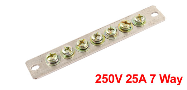 250V 25A 7 Way Straight Ground Wire Row Copper Electrical Bar Terminal Block