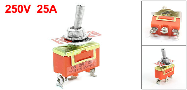 Product Name Toggle Switch Type SPDT (ON/OFF/ON) Position 3 Voltage 250V Current 25A Mounting Thread Diamter 12mm / 0.5" Main Body Size 48 x 28 x 21mm/ 1.9" x 1.1" x 0.8"(L*W*H) Overall Height 57mm / 2.2" Material Metal, Plastic Main Color Silver Tone, Orange Net Weight 29g Package Content 1 x Toggle Switch - Reviews