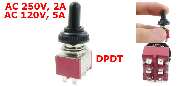 Feature Waterproof Rubber Boot Pin Number 6 Pins Position 3 Positions(ON/OFF/ON) Type DPDT(Momentary) Cap Diameter 13.6mm / 0.5" Body Size(Approx.) 13 x 11.6 x 10mm / 0.5" x 0.46" x 0.4"(L*W*T) Total Height 34mm / 1.3" Material Plastic, Metal Weight 8g Package Content 1 x Toggle Switch - Reviews