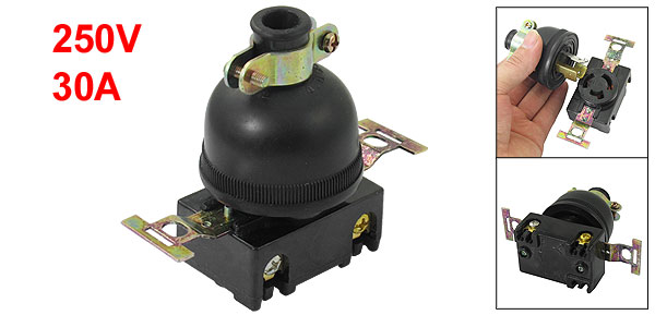 Product Name Water Resistant Plug + Socket Plug Type 3 Pin Plug Locking Voltage 250V Current 30A Color Black Material Plastic, Metal Cable Hole Dia. 10mm/ 0.4'' Total Size 105 x 51 x 86mm/ 4.1" x 2" x 3.4" (L*W*T) Net Weight 143g Package 1 x 3 Pin Plug