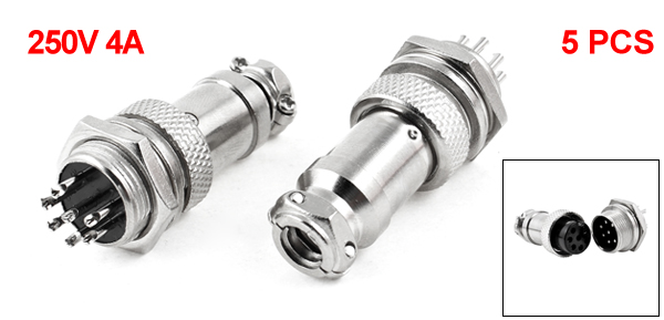 250V 4A 16mm 7 Pins Panel Power Chassis Aviation Connector Plug 5pcs