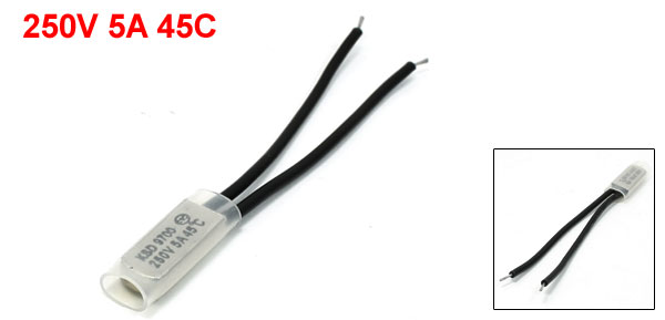 Product Name Temperature Control Switch Model.No KSD9700 Contact NC(Normal Close) Rated Voltage 250V Current 5A Action Temperature 45C Material Plastic, Metal Color Black, Silver Tone Cable Length 7.5cm/ 3" Head Dimension 20 x 7.8 x 4mm/ 0.78" x 0.3" x 0.16"(L*W*T) Weight 5g Package Content 1 x Thermostat Temperature Switch - Reviews