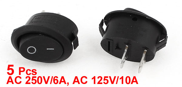250V/6A 125V/10A AC 2 Pins SPST Panel Mount Boat Rocker Switch 5Pcs
