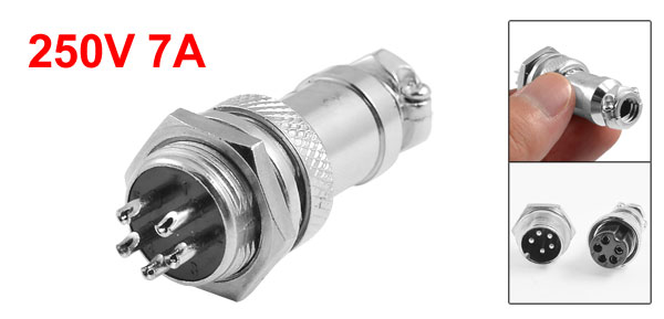 Product Name Aviation Connector Plug Contacts Pin Number 5 Contacts Pin Diameter Ø2mm Working Voltage 250V Working Current 7A Withstand Voltage 1500V AC Insulator Resistance 500MΩ End Thread Hole Diameter 6mm/ 0.23" Base Thread Diameter 16mm/ 0.63" Hex Nut Size 19mm/ 0.75" Size 21 x 50mm/ 0.82" x 2" (max.D*L) Material Alloy, Rubber Color Silver Tone Weight 22g Package 1 x Aviation Connector Plug - Reviews