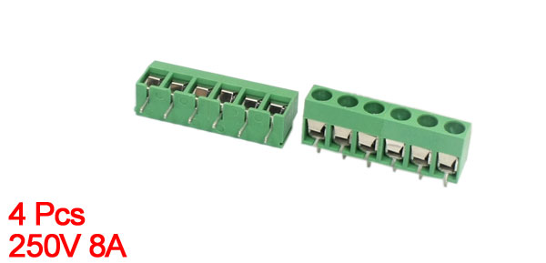 250V 8A 4.5mm 6-Position PCB Mount Screw Terminal Block Green 4 Pcs