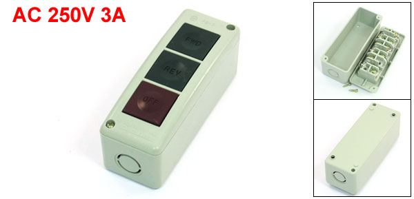 250V AC 3A Forward Reverse Off Power Pushbutton Switch 116 x 45 x 42mm