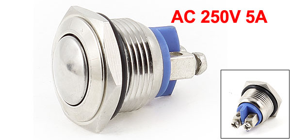 250V/AC 5A Momentary SPST Pushbutton Switch Camel Round Shape Silver Tone 2 Pins