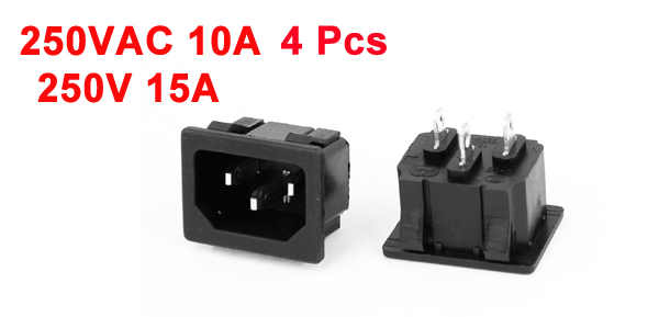 250VAC 10A 250V 15A 3 Pins C14 Plug Panel Mount Power Inlet Socket Black 4 Pcs