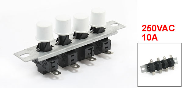 Item Name Push Button Switch Action Type Self Locking Contact Type SPST Current 10A Voltage AC 250V Button Color White Button Diameter 1.2cm / 0.47" Total Size 10 x 4 x 4.2cm / 3.9" x 1.6" x 1.6"(L*W*H) Material Plastic, Metal Weight 30g Package Content 1 Row x Push Button Switch - Reviews