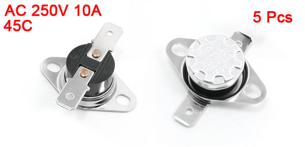 Product Name Temperature Control Switch Model KSD301 Type NO Voltage AC 250V 10A Action Temperature 45C Size(Each) 3.5 x 3.3 x 1.3cm/1.4" x 1.3" x 0.51"(L*W*T) Material Metal, Plastic Color Black, Silver Tone Net Weight 23g Package Content 5 Pcs x Temperature Control Switch - Reviews