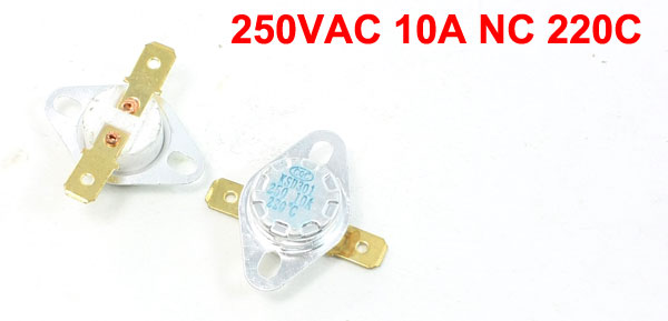 Product Name Ceramic Thermostat Model.No KSD301 Action Type NC Action Temperature 220C Voltage 10A AC 250V Size(Each) 3.3 x 3.3 x 1.3cm/1.3" x 1.3" x 0.51"(L*T) Material Metal, Ceramic Color White, Gold Tone, Silver Tone Net Weight 15g Package Content 2 x Ceramic Thermostat - Reviews