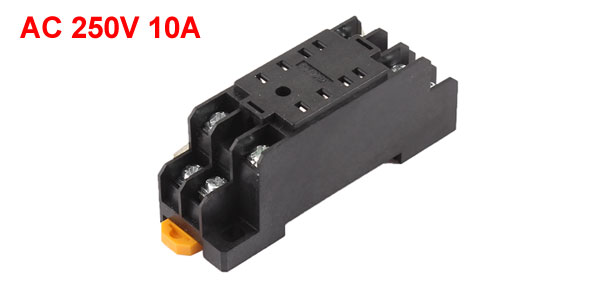 Product Name Relay Socket Base Model No. PYF08A Output Current 10A Output Voltage 250V AC Mount Hole Size 5 x 4mm/ 0.2"x 0.16"(L*W) Total Size (Approx.) 7.5 x 2.2 x 3cm / 3" x 0.87" x 1.2" (L*W*H ) Material Metal, Plastic Color Black, Silver Tone Net Weight 28g Package Content 1 xRelay Socket Base - Reviews