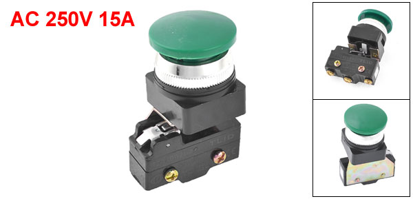 250VAC 15A 1NO 1NC 30mm Thread Momentary Green Mushroom Button Micro Switch
