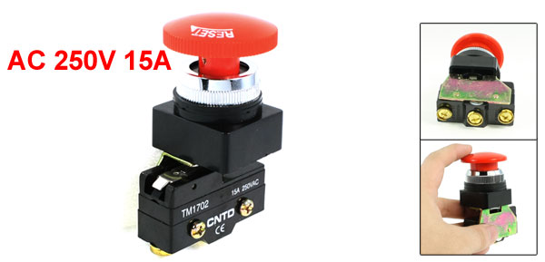 250VAC 15A 25mm Threaded Red Mushroom Head 1NO 1NC Locking Reset Micro Switch
