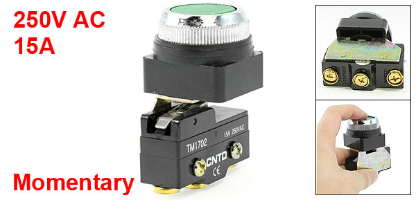 Product Name Micro Limit Switch Model No. TM1702 Actuator Action Momentary Green Flat Push Button Contact Type 1 NO 1 NC 1 Com Flat Push Button Diameter 30mm/1.2" Mounted Thread Diameter 35mm/1.4" Total Size 70 x 50 x 35cm / 2.75" x 2" x 1.4"(L*W*H) Material Metal, Plastic, Electric Parts Color Black, Green Net Weight 76g Package Content 1 x Micro Limit Switch - Reviews