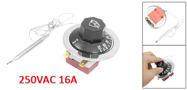 Product Name Temperature Controller Switch Material Plastic, Metal Temperature Range 30 to 110 Celsius Degree Contact Capacity 250V 16A Frequency 50/60Hz Contact Type NC Terminal Quantity 2 Pins Wire Length 70cm/ 27.6" Probe Size 75 x 6mm/ 2.95" x 0.24" (L*D) Boby Size(Approx) 58 x 52mm/ 2.3" x 2.05" (D*H Max) Main Color As Picture Shown Weight 93g Package Content 1x Temperature Controller Switch - Reviews