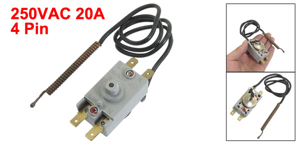 250VAC 20A 4 Pin Terminals Thermostat for Electric Water Heater Kettle WQS93-12