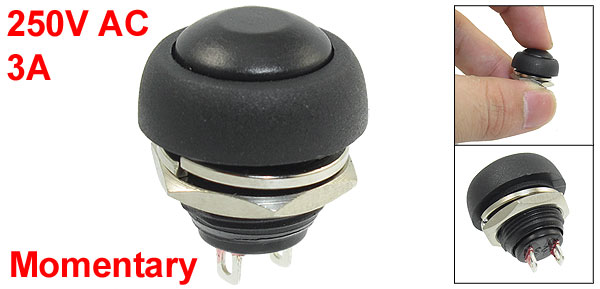 Item Name Push Button Switch Action Type Momentary Head Shape Black Round Head Contact SPST(ON/OFF) Switch Rating 250VAC 3A Pin Number 2 Thread Diameter 12mm/0.5'' Total Size 18 x 18mm/0.7'' x 0.7'' (L*Max.W) Material Plastic, Metal Color Black Net Weight 4g