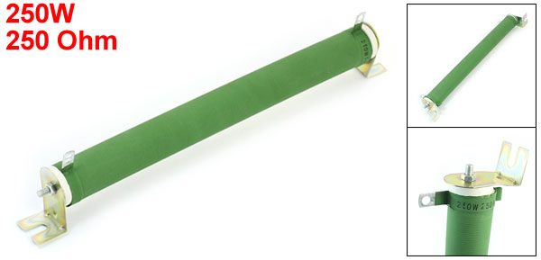 Product Name Wire Wound Resistor Type Adjustable Rated Power 250W Resistance 250 Ohm Hole Dia(Approx) 5mm/0.25" Hole Center Distance 25.5cm/10" Fixing Hole Dia 6.5mm/0.25" Fixing Hole Center Distance 30.5cm/12" Tube Size(Approx) 29 x 2.9cm/ 11.4" x 1.1"(L*D) Total Size(Approx) 32 x 65 x 3cm/ 12.6" x 2.5" x 1.2"(L*W*H) Color Green, Silver Tone Material Metal, Ceramic Weight 289g Package Content 1 x Wire Wound Resistor - Reviews