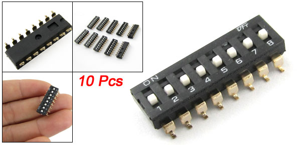 2.54mm Pitch 8 Position SMT SMD Type DIP Switch 10 Pcs