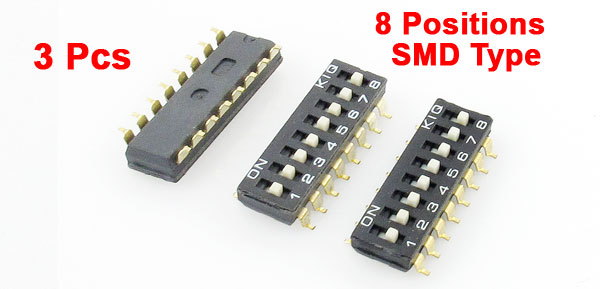 2.54mm Pitch 8 Positions 16 Pin Terminals SMD Type DIP Switch 3 Pcs