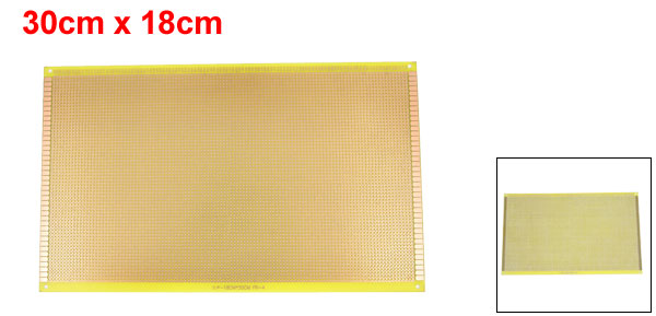 Product Name Universal PCB Board Hole Dia(Approx) 1mm / 0.039" Hole Pitch(Approx) 2.54mm / 0.1" Size(Approx) 30 x 18cm / 11.8" x 7.1"(W*L) Thickness(Approx) 1.6mm / 0.06" Material FR-4, Copper Color Copper Tone Net Weight 109g Package Content 1 Pcs x Universal PCB Board - Reviews