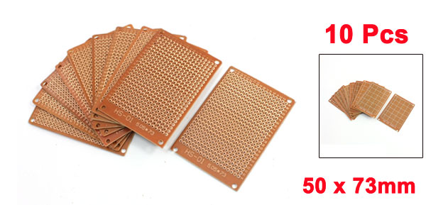 2.54mm Pitch PCB Board Prototype Breadboard Single Side 50mm x 73mm Brown 10Pcs