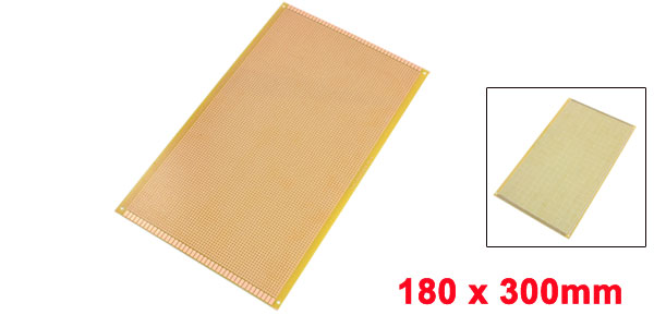 Product Name Universal PCB Board Hole Dia(Approx) 1mm / 0.039" Hole Pitch(Approx) 2.54mm / 0.1" Size(Approx) 180 x 300mm /7" x 11.8"(W*L) Thickness(Approx) 1.2mm / 0.047" Material FR-4, Copper Net Weight 114g Package Content 1 Pcs x Universal PCB Board - Reviews