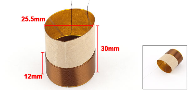 Wire: Copperd (Inner Dia) 25.5mm / 1" D (Outter Dia) 27mm / 1.06" H ( Total Height) 30mm / 1.18" h (Coil Height) 12mm / 0.47" Impedance 7 Ohm Coil Power 30W~80W Coil Layer 2 Fit for Bass Speaker Weight 4g Color Black Package Content 1 x Voice Coil - Reviews