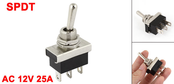 Position 3 Positions(ON/OFF/ON) Type SPDT(Latching) Body Size(Approx.) 29 x 25 x 15mm / 1.1" x 1" x 0.6"(L*W*T) Total Height 56mm / 2.2" Main Color Black, Silver Tone Main Material Metal Weight 25g Package Content 1 x Toggle Switch - Reviews