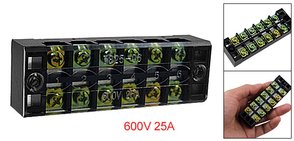 25A 6 Position Dual Row Screw Terminal Barrier Block Jlbwa