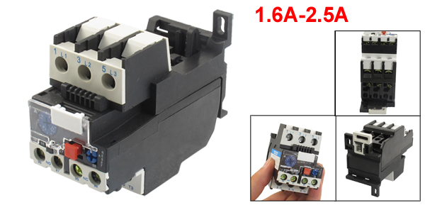 Product Name Thermal Overload Relay Model JR28-13 Material Plastic, Electronic Components Thermal Contact 1 NO + 1 NC Thermal Relay Rated Current 2.5A Adjustable Current Range 1.6A - 2.5A Rated Insulation Voltage 690V Total Size (Approx.) 7.2 x 4.5 x 9.5cm /2.8 " x 1.7 "x 3.7" (L*W*T) Main Color Black Weight 203g Package Content 1 x Thermal Overload Relay - Reviews