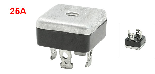 Terminal Size 11 x 6mm/ 0.4" x 0.24"(L*W) Body Size 26 x 26 x 14mm/ 1" x 1" x 0.55" (L*W*T) Mounted Hole Dia. 4.5mm/ 0.2" Material Resin, Aluminum Color Silver Tone Net Weight 19g Package Content 1 x Single Phase Bridge Rectifier - Reviews
