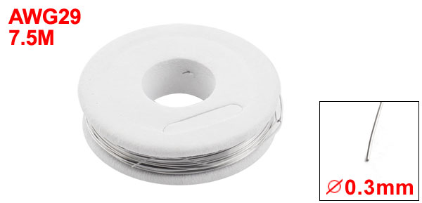 Details25Ft 0.3mm AWG29 Gauge Nichrome Resistance Resistor Wire for Kiln Furnace  Product Name Resistance Wire Material Nichrome Average Wire Diameter 0.3mm Wire Gauge AWG29 Wire Length 7.5M/25ft Resistance 15.4Ohm/M Maximum Operating Temp 1400°C(2550°F) Roll Size 35 x 16mm/ 1.4" x 0.63"(D*L) Total Size 42 x 20mm/1.7" x 0.8"(D*H) Color Silver Tone Net Weight 34g Package Content 1 x Resistance Wire