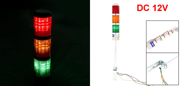 2.5Ft Wire Cord Industrial Red Orange Green LED Signal Lamp Warning Light DC 12V