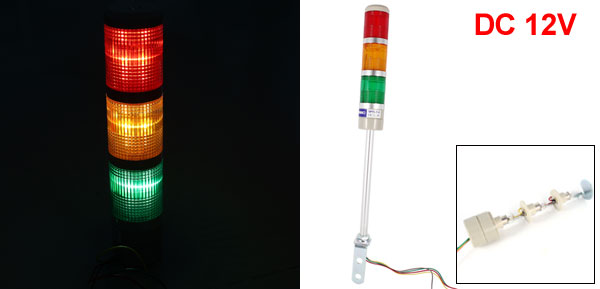 2.5Ft Wire Industrial Red Orange Green Flashing Signal Lamp Warning Light DC 12V