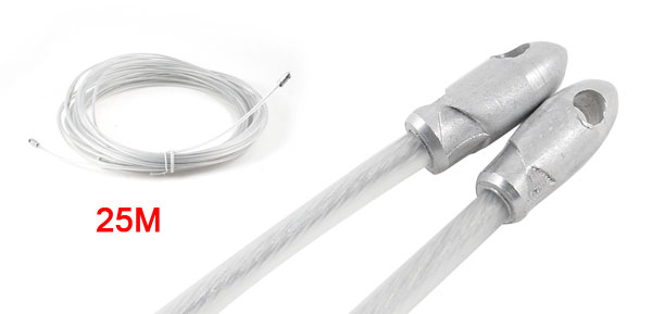 25M White Plastic Coated Steel Flexible Fish Tape Electric Wire Cables Puller