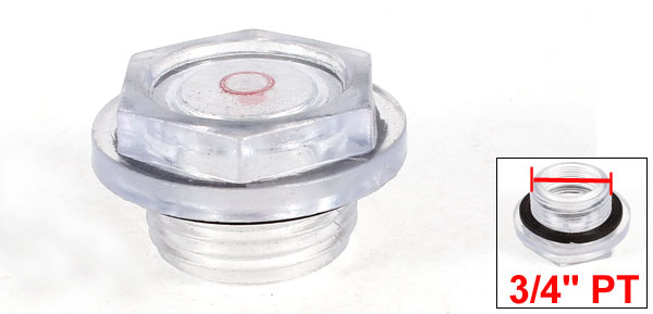 Details25mm 3/4" PT Male Thread Air Compressor Clear Plastic Oil Sight Glass  Product Name Oil Level Sight Glass Fit for Air Compressor Main Material Plastic, Rubber Main Color Clear, Black Thread Diameter 25 mm / 3/4" PT Total Size 38 x 23 mm / 1.5" x 0.9" (Max.D*H) Weight 11g Package Content 1 x Oil Level Sight Glass