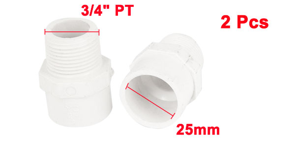 Product Name Pipe Connector Inner Dia (Approx.) 25mm/ 0.98" Male Thread Dia 25mm/ 3/4" PT Overall Size (Approx.) 32 x 44mm / 1.3" x 1.8"(D*H) Material PVC Color White Weight 38g Package Content 2 x Pipe Connectors - Reviews