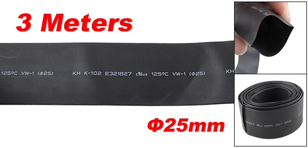 25mm Black Heat Shrinkable Tube Shrink Tubing 9.8FT