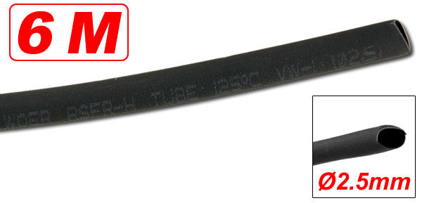 2.5mm Black Polyolefin Insulation Heat Shrink Tube 6M 19.7ft