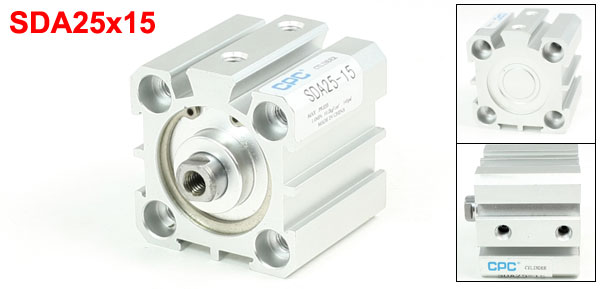 Product Name Air Cylinder Model SDA25x15 Action Type Double Action Bore 25mm Stroke 15mm Max Presssure 1.0Mpa / 10.2Kg/cm² / 145PSI Rod Diameter 10mm / 0.4"' Rod Thread Diameter 4mm / 0.15" Air Hole Diameter 4mm / 0.15" Mounting Hole Diameter 6mm / 0.23" Mounting Hole Distance(center to center) 26mm / 1"